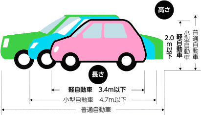 | 2.5m | 1.3m | 2.0m | (軽二輪) 250cc超 |